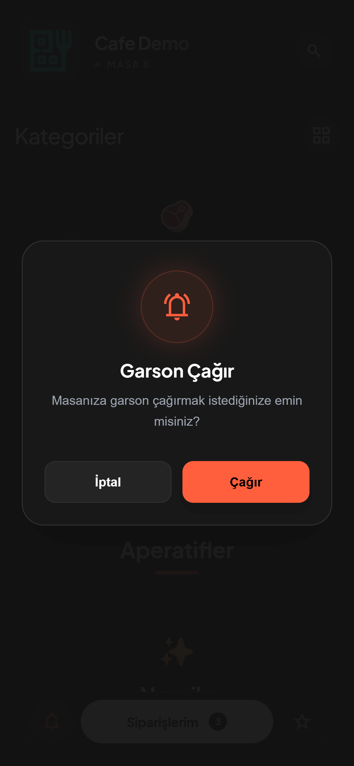 Müşterileriniz masadan tek tuşla garson çağırabilir veya hesap isteyebilir.